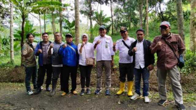 Kades Cihanjawar bersama Kepala Balai Besar Taman Nasional Gunung Gede Pangrango Tinjau Jalan Desa