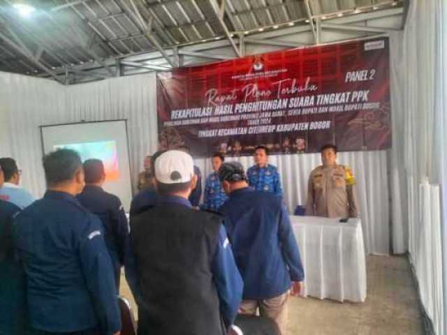 Polres Bogor - Aliansinews id. Kapolsek Citeureup Kompol Victor G Humanongan , S.H, M.H didampingi oleh Bhabinkamtibmas Desa Tarikolot melakukan Pelayanan Publik dengan mengikuti Pembukaan Rapat Pleno hasil Pilkada tingkat Kab Bogor dan Provinsi Jawa Barat di Gudang Tangsaw Desa Tarikolot. (1/12/2024).