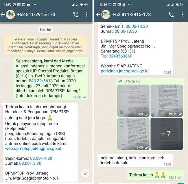 Sampai berita ini diturunkan, Media AI sedang meminta konfirmasi apakah DPMPTSP Jateng menerbitkan izin tersebut, karena sejak ditetapkannya UU No. 3/2020 prosedur perizinan tidak lagi mengacu kepada UU No. 4 Tahun 2009.