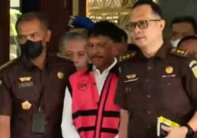 Johnny G Plate ditetapkan sebagai tersangka. Dia langsung ditahan di rutan Salemba cabang Kejaksaan Agung selama 20 hari ke depan.