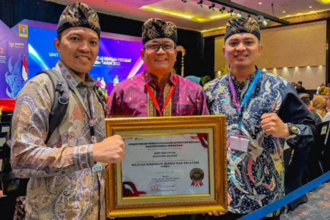 Biro Sumber Daya Manusia (SDM) Polda Sumatera Selatan (Sumsel) meraih prestasi membanggakan dengan dianugerahi predikat Wilayah Birokrasi Bersih dan Melayani (WBBM) oleh Kementerian Pendayagunaan Aparatur Negara dan Reformasi Birokrasi (PAN RB) yang diserahkan langsung oleh Menteri PAN RB, Abdullah Azwar Anas disela Acara penganugerahan berlangsung di Bali Nusa Dua Convention Center, Rabu (06/12/2023).