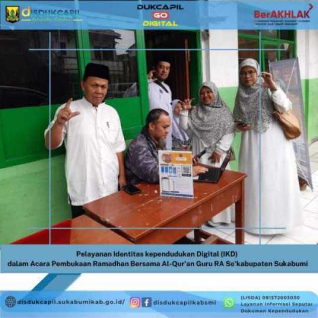 aliansinews.id - Sukabumi, Dalam Bulan Ramadhan Disdukcapil Kabupaten Sukabumi Melakukan kegiatan Aktivasi Identitas Kependudukan Digital pada kegiatan Pembukaan Ramadhan Bersama Al-Qur'an Guru RA Se-Kabupaten Sukabumi bertempat di Masjid Jami Annashir (Komplek Yatshi Cibolangkaler, Cisaat), Senin,11 April 2023