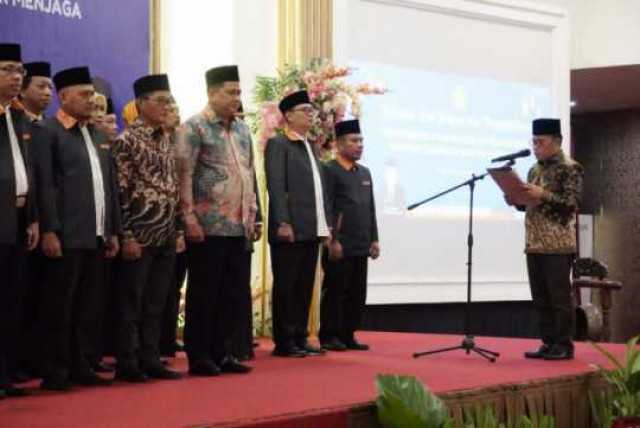 Direktur Jenderal Bimbingan Masyarakat Islam Kementerian Agama Republik Indonesia Kamaruddin Amin mengukuhkan Pengurus Wilayah Majelis Da'i Kebangsaan Provinsi Sumatera Selatan (MDK) Periode 2023-2026 di Ballroom Hotel Beston Palembang, Selasa (28/11/2023) malam.