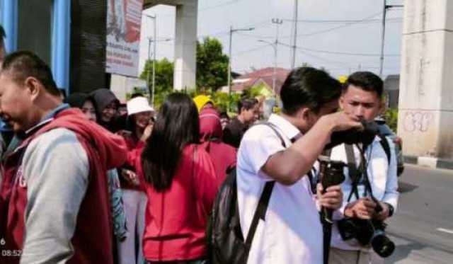 Wartawan yang melakukan peliputan di SMKN 2 sudah tiba di lokasi Kunker Jokowi sejak pukul 08.00 WIB disuruh menunggu dipinggir jalan.