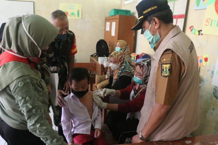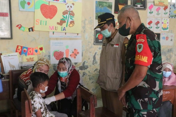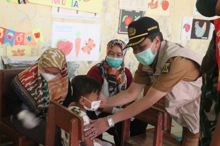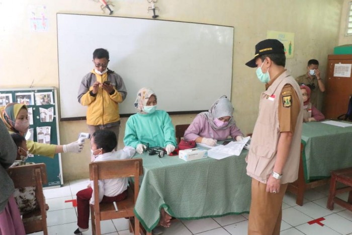 Sukabumi, Pastikan kesiapan vaksinasi covid 19 bagi anak-anak usia 6 sampai dengan 11 tahun, Sekda Kab. Sukabumi Ade Suryaman monitoring pelaksanaan vaksinasi di wilayah Kecamatan Nyalindung. Vaksinasi pada hari kedua dipusatkan di SDN Cikupa dengan Target Vaksinasi sebanyak 79 siswa.