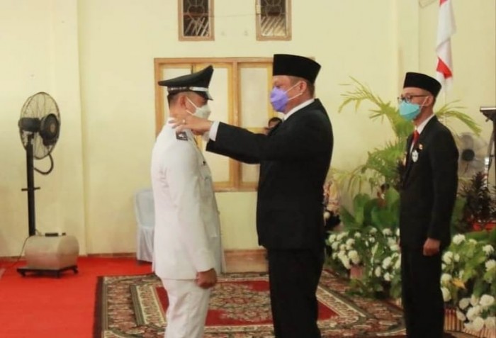 OKU Timur, Media AI - Kades terpilih Desa Sukosari Kecamatan Belitang, Moris Artaza Lova dilantik oleh Bupati OKU Timur H. Lanosin, S.T di Zona IV Desa Tugu Arum Belitang Madang Raya. Selasa, (8/6/21).