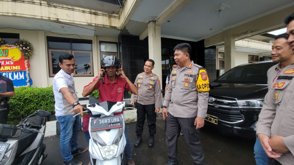 aliansinews.id - Sukabumi – Dalam waktu hanya 3 hari setelah melapor, Usman (45), warga Kp. Pasir Jati, Cikakak, Sukabumi, akhirnya dapat kembali tersenyum bahagia setelah sepeda motor kesayangannya yang hilang dicuri berhasil ditemukan dan dikembalikan oleh Polres Sukabumi.
