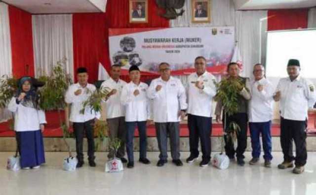 aliansinews.id - Sukabumi, Palang Merah Indonesia (PMI) Kabupaten Sukabumi menggelar musyawarah kerja di Pendopo, Sabtu, 8 Juni 2024. Musyawarah yang dihadiri Wakil Ketua PMI Jawa Barat Kombes Pol (Purn) H. Ruhanda ini, dibuka langsung Bupati Sukabumi H.Marwan Hamami.