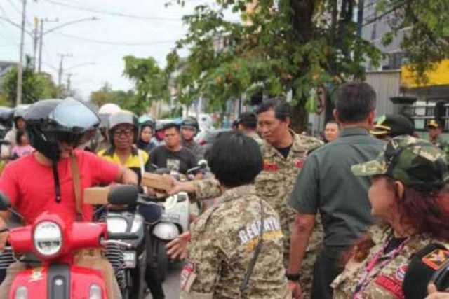 membagikan ratusan paket takjil kepada pengguna jalan yang melintas di depan Makodim 1016/Plk, aksi ini bukan sekadar berbagi keberkahan Ramadhan, melainkan juga menjadi momentum untuk menyuarakan komitmen mereka dalam menjaga stabilitas nasional pasca disahkannya RUU TNI,bahkan himpunan organisasi tersebut juga membentangkan spanduk yang bertuliskan dukungan RUU TNI yang sudah disahkan oleh DPR RI.