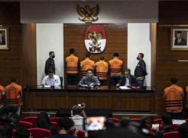 Foto: Sejumlah tersangka kasus dugaan korupsi Ditjen Perkeretaapian Kementerian Perhubungan dihadirkan dalam konferensi pers di Gedung KPK, Jakarta. (Dok)