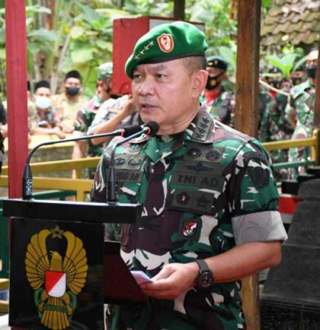Kendal – Kepala Staf Angkatan Darat (KASAD) Jenderal TNI Dudung Abdurachman, S.E., M.M., didampingi oleh Pangdam IV/Diponegoro Mayjen TNI Rudianto, pimpin upacara militer prosesi pemakaman salah satu prajurit terbaik TNI-AD, Alm. Serka (Anumerta) Ari Baskoro yang gugur dalam satuan tugas operasi  penebalan Apter BKO Gel. II Kodam XVII/Cenderawasih dan Kodam XVIII/Kasuari, bertempat di TPU keluarga Kasijan Wiryo Suharjo, Desa Pidodo Kulon, Kec. Patebon, Kab. Kendal. Senin (22/11/2021).