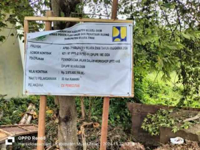 Dikonfirmasi oleh team bahwa PT .Pemecutan milik Akay bersaudara yang mengerjakan pelaksanaan proyek sedangkan PPK nya adalah Yusuf ,yang juga merupakan Kepala Workshop PUPR Kabupaten Muara Enim.