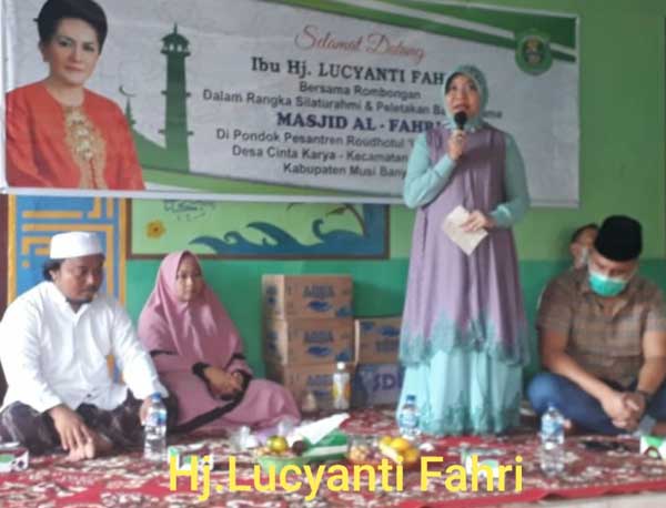 Kehadiran Hj Lucyanti Fahri beserta rombongan ini bertujuan untuk melaksanakan Peletakkan Batu Pertama Masjid Al-Fahri yang bertempat di Pondok Pesantren Roudhatul Ullum di desa Cinta Karya (C3) kecamatan Plakat Tinggi kabupaten Musi Banyuasin, Provinsi Sumatera Selatan (Sumsel).