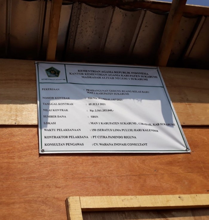 PEMBANGUNAN MAN 1 CIBADAK SUKABUMI DIDUGA BELUM MEMILIKI IMB