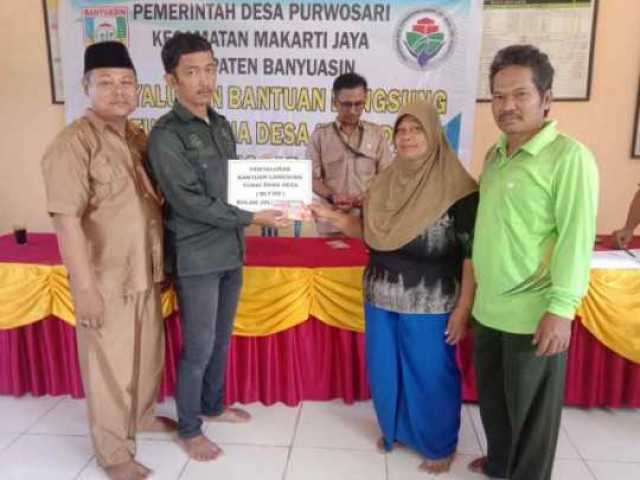 Bertempat di Pendopo Balai Desa Purwosari. Pemerintah Desa Purwosari Kecamatan Makarti Jaya, kembali menyalurkan Bantuan Langsung Tunai Dana Desa (BLT DD) Bulan- Juli_Agustus Tahun 2024 Kepada 20 Keluarga Penerima Manfaat (KPM). Tampak terlihat dari pukul 08.00 WIB sejumlah KPM sudah memadati Kantor Desa Purwosari guna menerima Bantuan Langsung Tunai tersebut. Senin (19/8/2024)