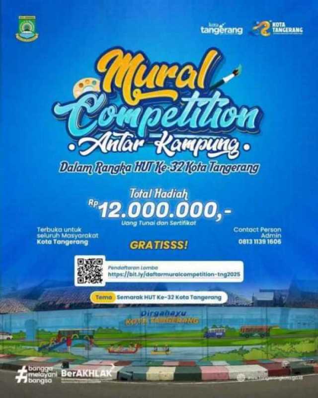 “Tunjukan kreativitas kalian dengan membuat mural di kampung masing-masing dengan tema HUT Ke-32 Kota Tangerang. Daftar sekarang juga di bit.ly/daftarmuralcompetition-tng202,” seru Ian, Selasa (21/1/25).