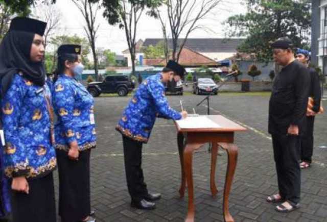 KARANGANYAR – Suasana pengambilan sumpah janji dan penyerahan surat keputusan (SK) calon pegawai negeri sipil (CPNS) di halaman kantor Badan Kepegawaian dan Pengembangan Sumber Daya Manusia (BKPSDM) Karanganyar, Kamis (2/3/2023), terlihat berbeda. Bupati Karanganyar Juliyatmono yang biasanya terlihat semringah, dalam momentum ini terlihat marah.