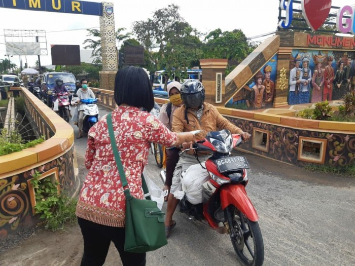 Sekretaris PPNI OKU Timur Susilo, S.Kep, Ners koordinir kegiatan pembagian masker kepada pengendara roda 2 dan roda 4 di simpang 6 desa Gumawang. Kegiatan tersebut diselenggarakan sebagai bentuk peringatan hari jadi Persatuan Perawat Nasional Indonesia yang ke 47.
