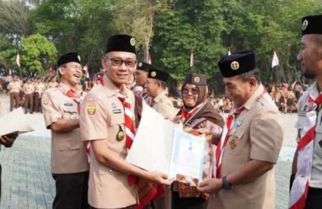 Aliansi Indonesia - Wakil Bupati OKU Timur H.M. Adi Nugraha Purna Yudha, S.H yang akrab disapa Mas Yudha menjadi Pembina Upacara Puncak sekaligus Penutupan Peringatan Hari Gerakan Pramuka Tahun 2023, berlangsung di Taman Hutan Kota Kawasan Komplek Perkantoran Pemkan OKU Timur, Senin, 14 Agustus 2023.