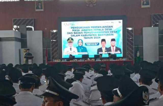 Sebanyak 286 kepala desa dikukuhkan perpanjangan masa jabatan Kepala Desa dan 288 Badan Pemusyawaratan Desa dalam Kabupaten Banyuasin, di Graha Sedulang Setudung, Kamis (11/7) oleh Pj Bupati Banyuasin Hani Syopiar Rustam. SH