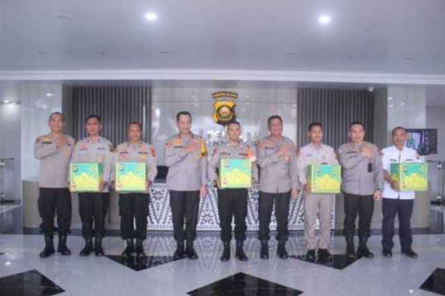 Polda sumsel bagikan bingkisan lebaran kepada seluruh personel.