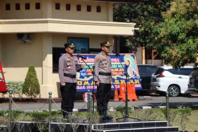 Foto: Kapolres OKU Timur AKBP, Dwi Agung Setyono Saat memimpin Apel Farewell