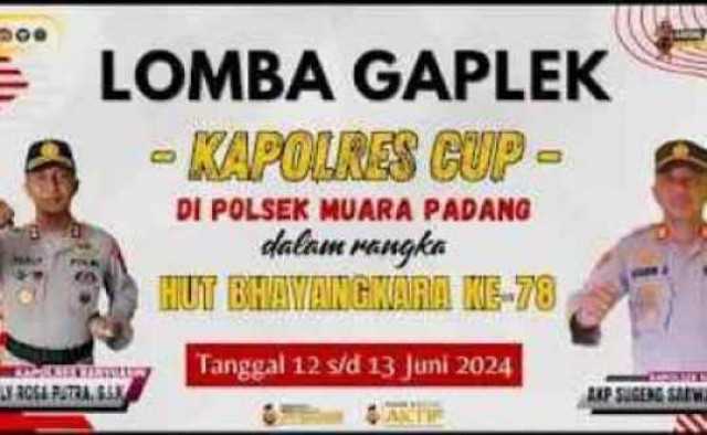 Dalam rangka HUT Bhayangkara ke- 78, Kapolsek Muara Padang, menggelar perlombaan yang dirangkai dalam kegiatan Kapolres CUP, salah satunya adalah lomba Gaple, yang di gelar pada tanggal 12-13, Juni 2024 dengan peserta dari masyarakat umum, Minggu (09/06/24)
