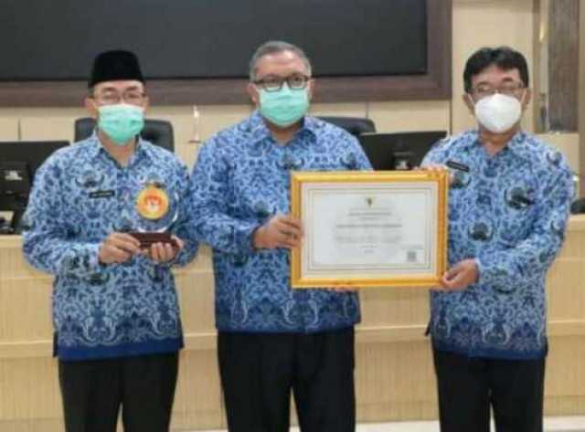 Rapat Dinas yang dipandu oleh Sekda Ade Suryaman tersebut diawali dengan Penyerahan piagam penghargaan anugerah meritokrasi KASN tahun 2021 yang diserahkan oleh Sekretaris Daerah dan Kepala BKPSDM kepada Bupati Sukabumi.