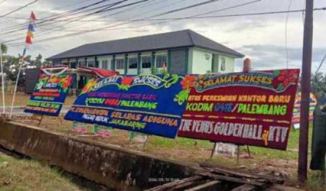 Dandim 0418/Palembang, melalui Pasi Intel Czi Sarbanu saat di konfirmasi terkait karangan tersebut mengatakan bahwa Makodim 0418/Palembang hari ini dibanjiri ucapnya selamat atas peresmian gedung baru yang akan dilaksanakan Selasa (14/5/2024) Besok.