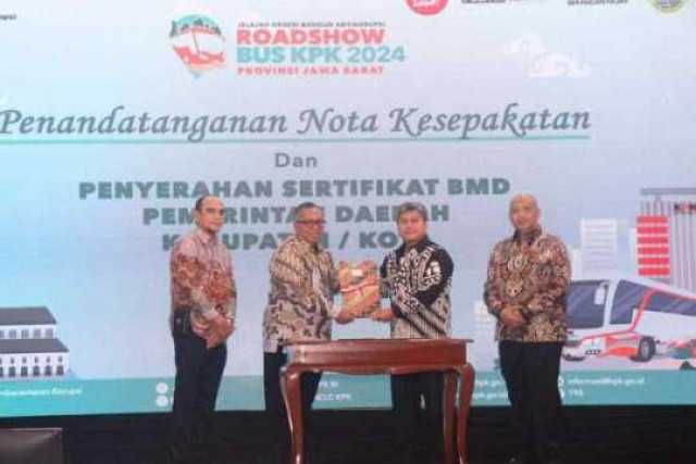 aliansinews.id - Sukabumi, Bupati Sukabumi H. Marwan Hamami menghadiri Pembukaan Roadshow Bus KPK 2024 dan Rapat Koordinasi Kepala Daerah sewilayah Jawa Barat. Acara yang diselenggarakan oleh Komisi Pemberantasan Korupsi (KPK) tersebut berlangsung di Aula Barat Gedung Sate Bandung, Kamis 8 Agustus 2024.