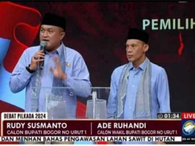 Hasil hitung cepat atau quick count Pilkada 2024 Lembaga Studi Visi Nusantara atau LS Vinus pada pemilihan bupati (pilbup) Bogor, calon bupati dan wakil bupati Bogor nomor urut 1 Rudy Susmanto - Ade Ruhandi (Jaro Ade) meraih 71,99 persen suara.