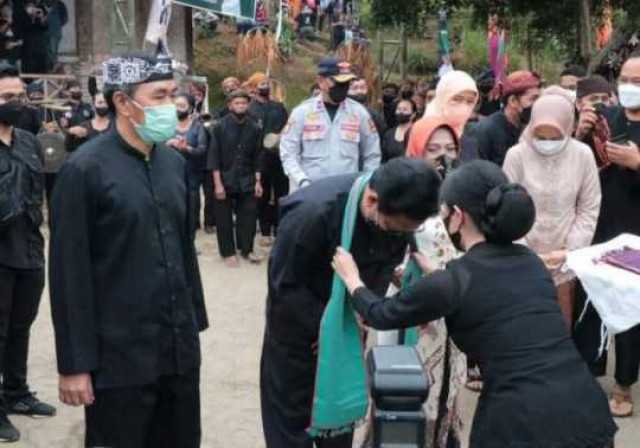 Sekretaris Daerah Kabupaten Sukabumi (Sekda) Ade Suryaman mendampingi Menteri Desa, Pembangunan Daerah Tertinggal dan Transmigrasi Dr. (HC) Drs. A. Halim Iskandar, M.Pd, untuk mengikuti prosesi penyambutan oleh Abah Ugi Sugriana ketua Adat Kasepuhan cipta gelar di lokasi Kasepuhan cipta Gelar desa sirnaresmi kecamatan cisolok. Jumat (14/1)