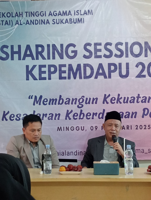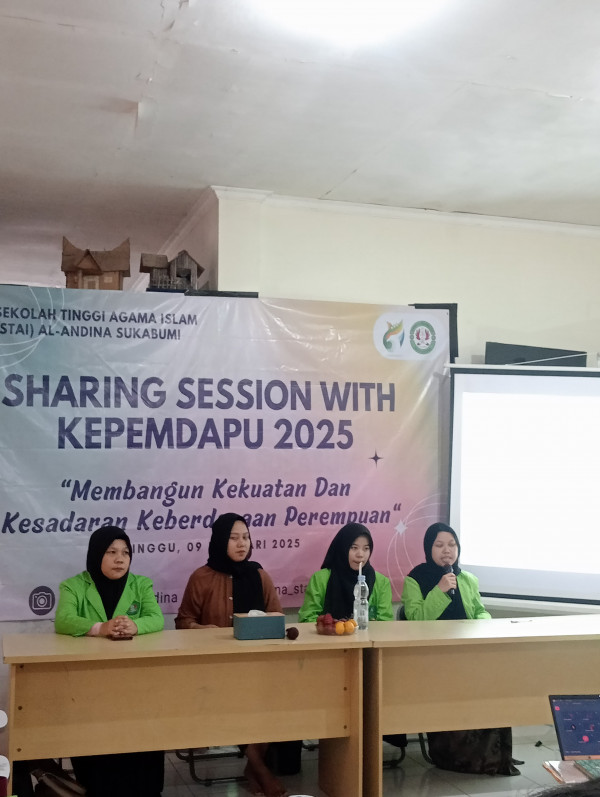STAI Al-Andina Sukabumi gelar acara sharing session dengan tema "Membangun Kekuatan dan Kesadaran Keberdayaan Perempuan". Acara ini didukung dari Kementrian Pemberdayaan perempuan dan diikuti oleh seluruh mahasiswa/i STAI Al - Andina, Bapak Dr.H.Usman Armaludin, M.Ag Ketua STAI Al - Andina, Bapak Dudin Fahrudin., S.Hi., M.Si Ketua Jurusan serta pematerinya juga dari mahasiswi STAI Al Andina yaitu :