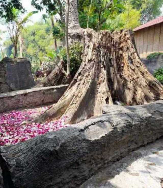 Tampak dilokasi taburan bunga mawar masih terlihat segar di makam yang terletak di dekat tunggak pohon randu alas besar. Diketahui, pohon randu alas itu mulai trubus pohon baru di sisi timur.