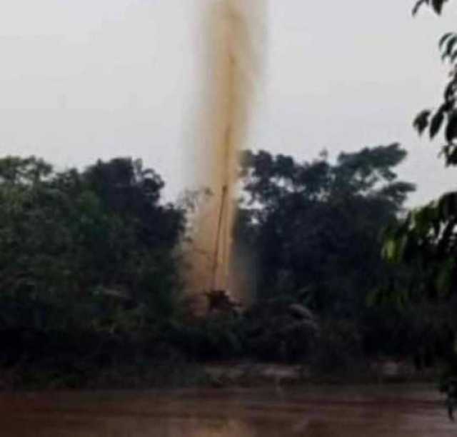Berdasarkan informasi dihimpun wartawan dilapangan menyebutkan, kejadian berawal saat pekerja tengah melakukan pengeboran dibantaran sungai. Tiba tiba terjadi semburan minyak mentah yang keluar hingga tidak dapat teratasi. Akibat kejadian tersebut masyarakat kesulitan memanfaatkan air sungai yang biasanya digunakan untuk keperluan sehari-hari.
