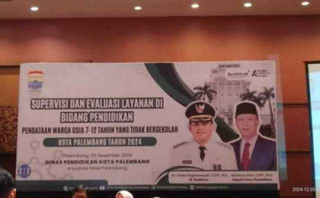 Dinas Pendidikan Kota Palembang menggelar kegiatan supervisi dan evaluasi layanan pendidikan serta pendataan anak usia 7-12 tahun yang tidak bersekolah se-Kota Palembang di Aryaduta Hotel Palembang, Kamis (5/12/2024). Acara ini merupakan bagian dari upaya meningkatkan kualitas pendidikan dan menekan angka putus sekolah di wilayah tersebut.
