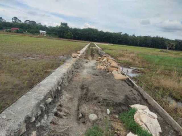 Pembangunan talut penahan tanah dan plat deaker 2023 didesa sukamaju terkesan jadi pertanyaan besar karena belum selesai