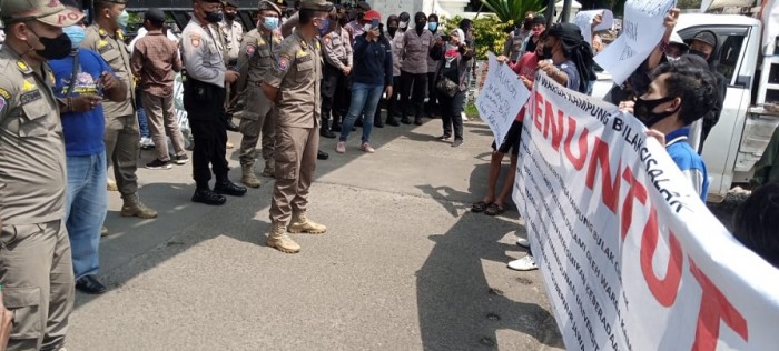 Dalam unjuk rasa tersebut warga diterima untuk audensi oleh Satpol PP.