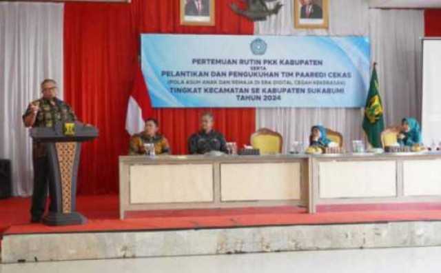 aliansinews.id - Sukabumi, Tim Pola Asuh Anak dan Remaja di Era Digital Cegah Kekerasan (PAAREDI CEKAS) tingkat kecamatan se Kabupaten Sukabumi resmi terbentuk. Hal itu pasca pelantikan dan pengukuhan oleh Hj Yani Jatnika Marwan selalu Ketua TP PKK sekaligus Bunda PAAREDI CEKAS Kabupaten Sukabumi di Pendopo, Kamis, 22 Februari 2024.