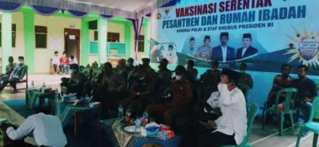 OKU Timur, Media AI - Pelaksanaan vaksinasi Covid-19 Serentak di Pesantren dan Rumah Ibadah sinergi Polri dan Staf Khusus Presiden. Vaksinasi dilaksanakan di halaman Madrasah Aliyah Pondok Pesantren Subulussalam Syarif Hidayatullah. Selasa, (07/09/21).