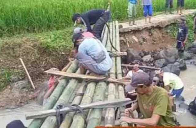 Pemerintah Desa Cibeber 2 yang selalu bergotong royong dalam membangun jembatan sementara agar dapat dilintasi oleh warga terutama anak-anak yang ingin berangkat ke sekolah.