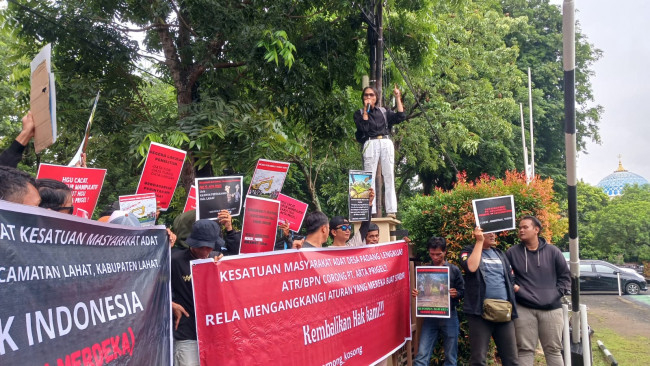 Warga Desa Padang Lengkuas Kabupaten Lahat menggelar aksi damai di Kantor Wilayah Badan Pertanahan Nasional (BPN) Provinsi Sumatera Selatan (Sumsel) hari ini. Aksi tersebut merupakan bentuk protes terhadap perampasan lahan seluas 900 hektar oleh PT. Artha Prigel yang telah berlangsung sejak tahun 1995.